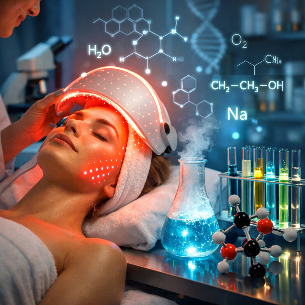 - Rood licht geeft cellen en hun onderdelen weer energie, laat deze weer optimaal werken. Verder verhoogt het de hydratatie van de huid, versterkte de capillairen, activeert het ATP, stimuleert collageenproductie, werkt anti-bacterieel, vermindert fijne lijntjes en rimpels, kalmeert roodheid en irritatie.
